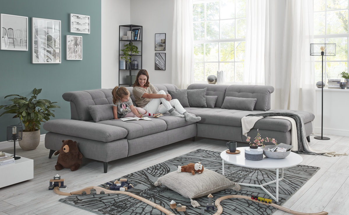 Die Eckkombination Santa Rosa der Firma Kawoo ist in einem tollen hellgrau / silber Ton gehalten.