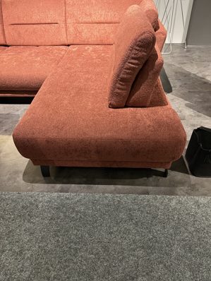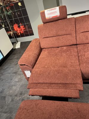 Die Wohnlandschaft Casa Comfort der Firma Dietsch Polstermöbel ist in einem tollen Stoff in mahagoni gehalten. Die Sitztiefe lässt sich durch eine manuelle Sitztiefenverstellung noch verringern und lädt sowohl zum Lümmeln, als auch zum ordentlichen Sitzen ein.