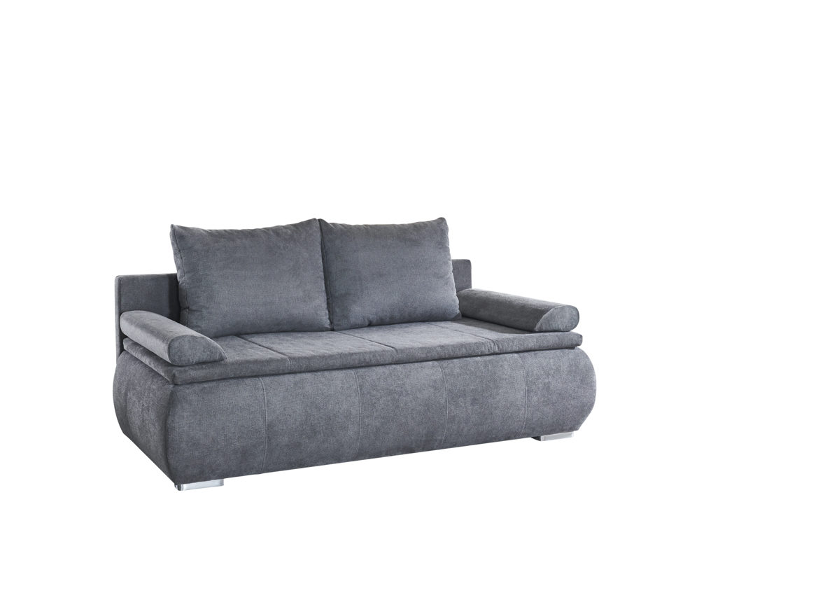 Das Verwandlungssofa Lenon der Firma Sun Garden ist in schönem grauen Stoff gehalten. Es verfügt über eine Schlaffunktion und einen Bettkasten, sowie 2 Rückenkissen und 2 Armlehnkissen.