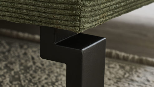 olivgrüner Feincordbezug und mattschwarze Metallfüße