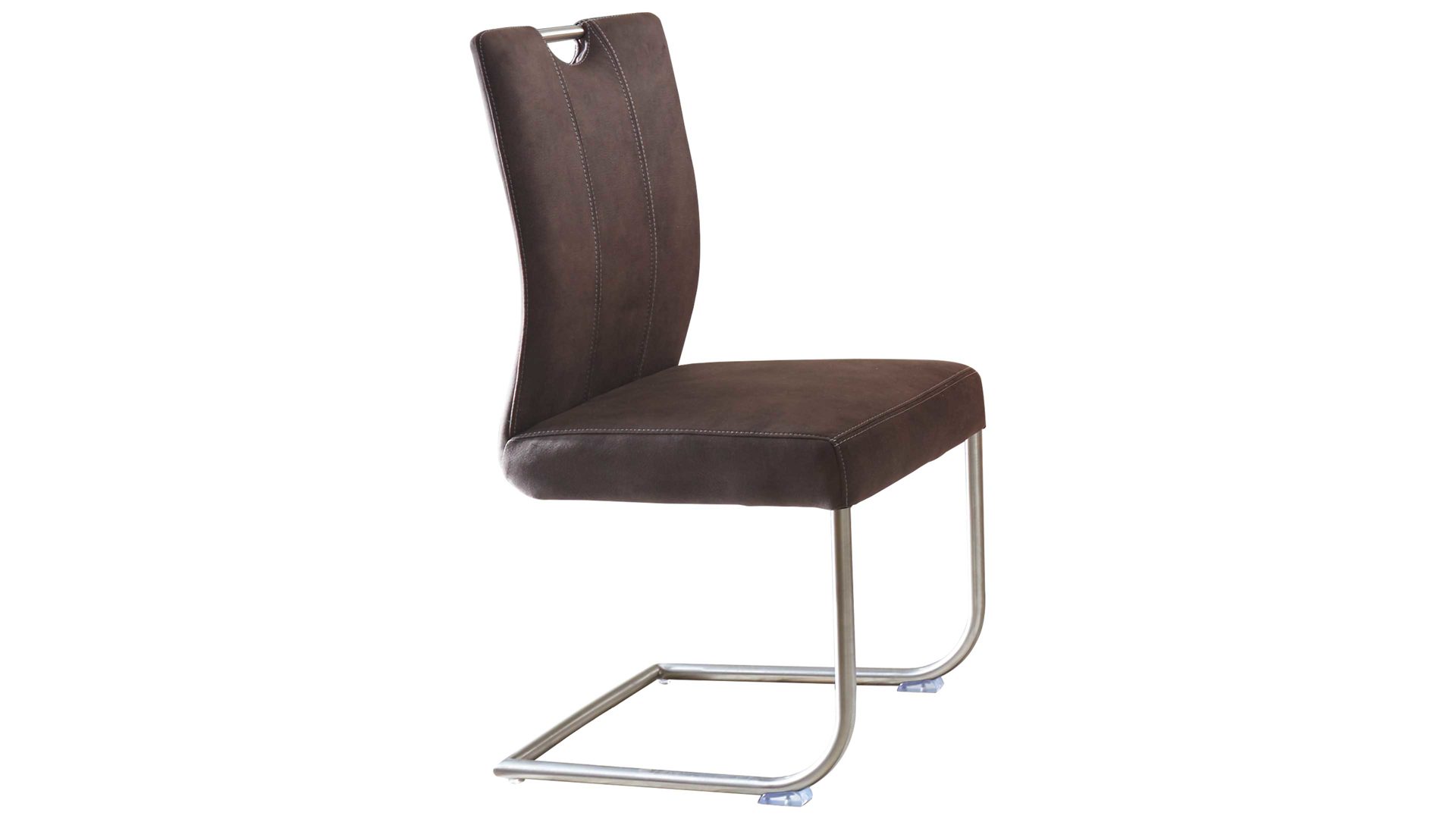 Dieser moderne Freischwinger mit dunkelbraunem Mikrofaserbezug verbindet Sitzkomfort und Stil. Ein handlicher Griff aus rundem Edelstahl an der Rückenlehne bietet zusätzlichen Halt und lässt Ihren Stuhl in jeder Situation gut da stehen. Mit hohem Komfort durch eine freischwingende Sitzfläche hinterlässt dieser Stuhl in Küche und Wohnraum einen bleibenden Eindruck.