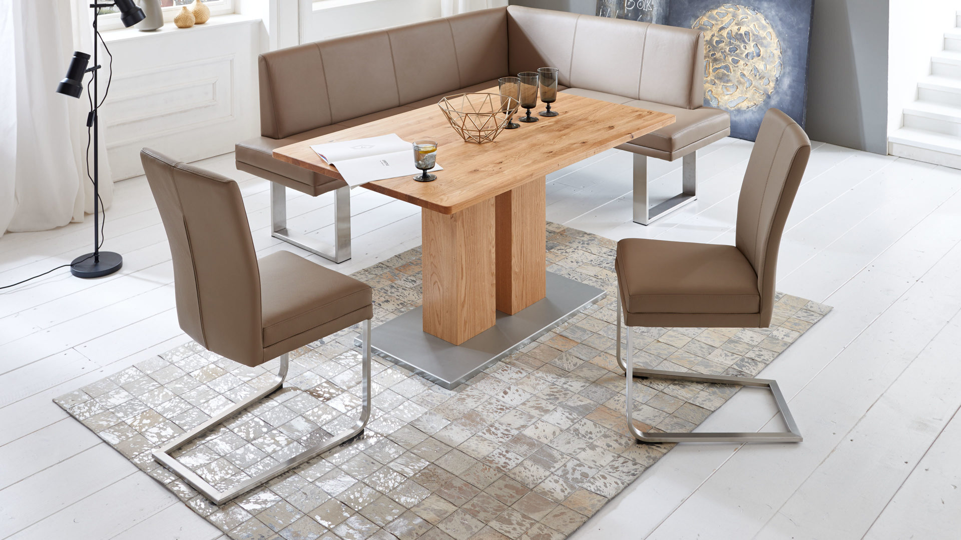 • Die Abbildung zeigt ein Wohnbeispiel, welches auch Dekoration sowie separat erhältliches Zubehör enthält. Im Lieferumfang enthalten ist ein Schwingstuhl Alica.