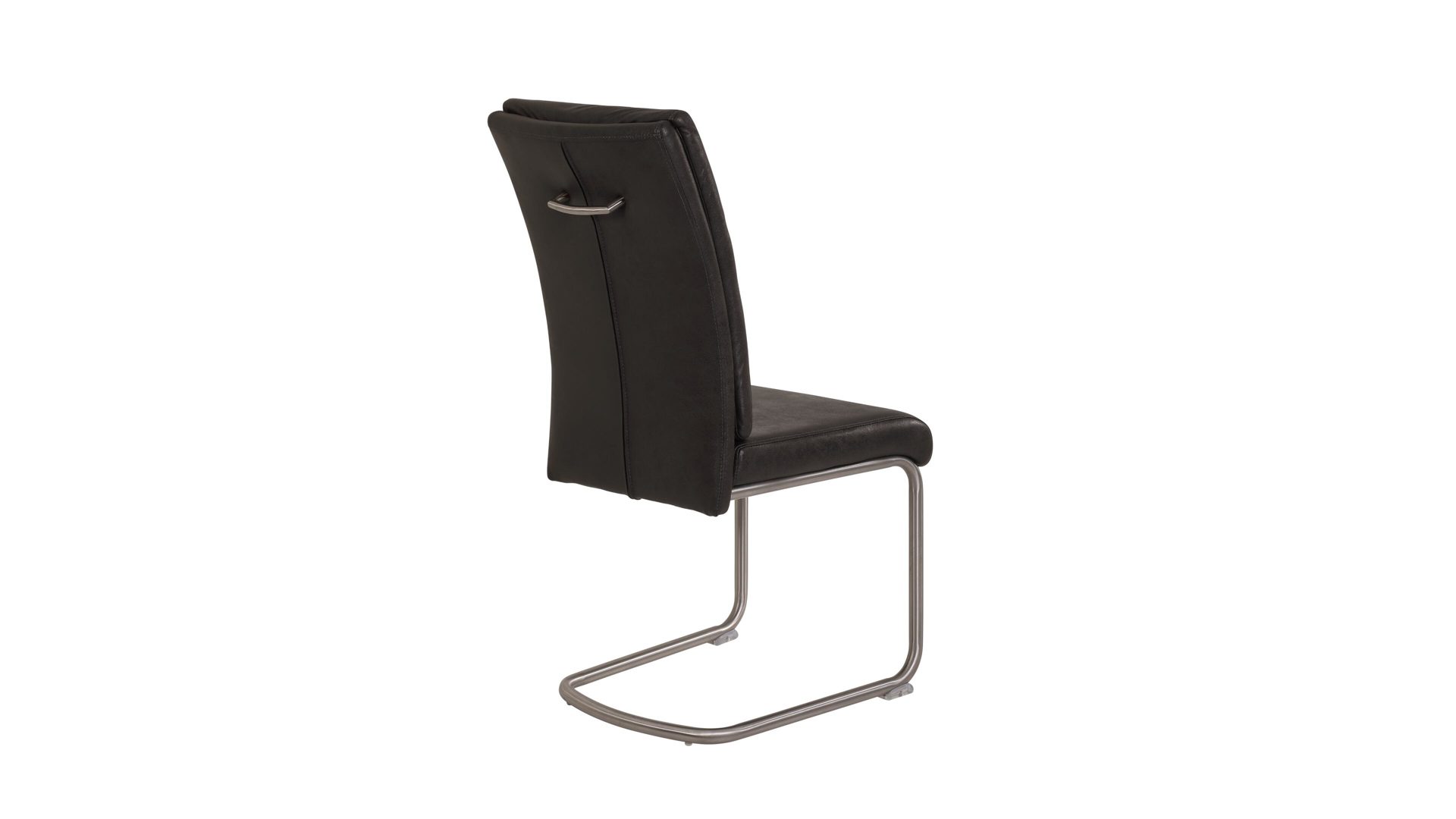 Ein optisch ansprechendes Sitzmöbel im klassischen Design. Dieser Schwingstuhl setzt sich aus einem stabilen Rundrohr-Edelstahlgestell sowie einem anthrazitfarbenen Mikrofaserbezug im Vintage-Look zusammen. Er ist fest gepolstert und bietet daher einen hohen Sitzkomfort. Als Teil einer Essgruppe kommt der stilvolle Freischwinger besonders gut zur Geltung. Seine Rückenlehne mit eingezogenen Nähten ist mit einem praktischen Griff ausgestattet.
