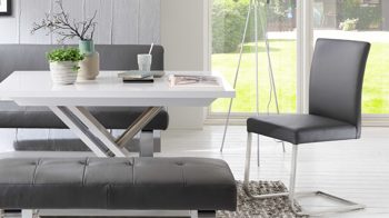 Benutzerfreundlich und chic zugleich komplettiert das Esszimmermöbel so Ihre Sitzgruppe im Essbereich. Ein weiterer Hingucker ist das Kufengestell in Edelstahloptik, das für Glanzpunkte sorgt.