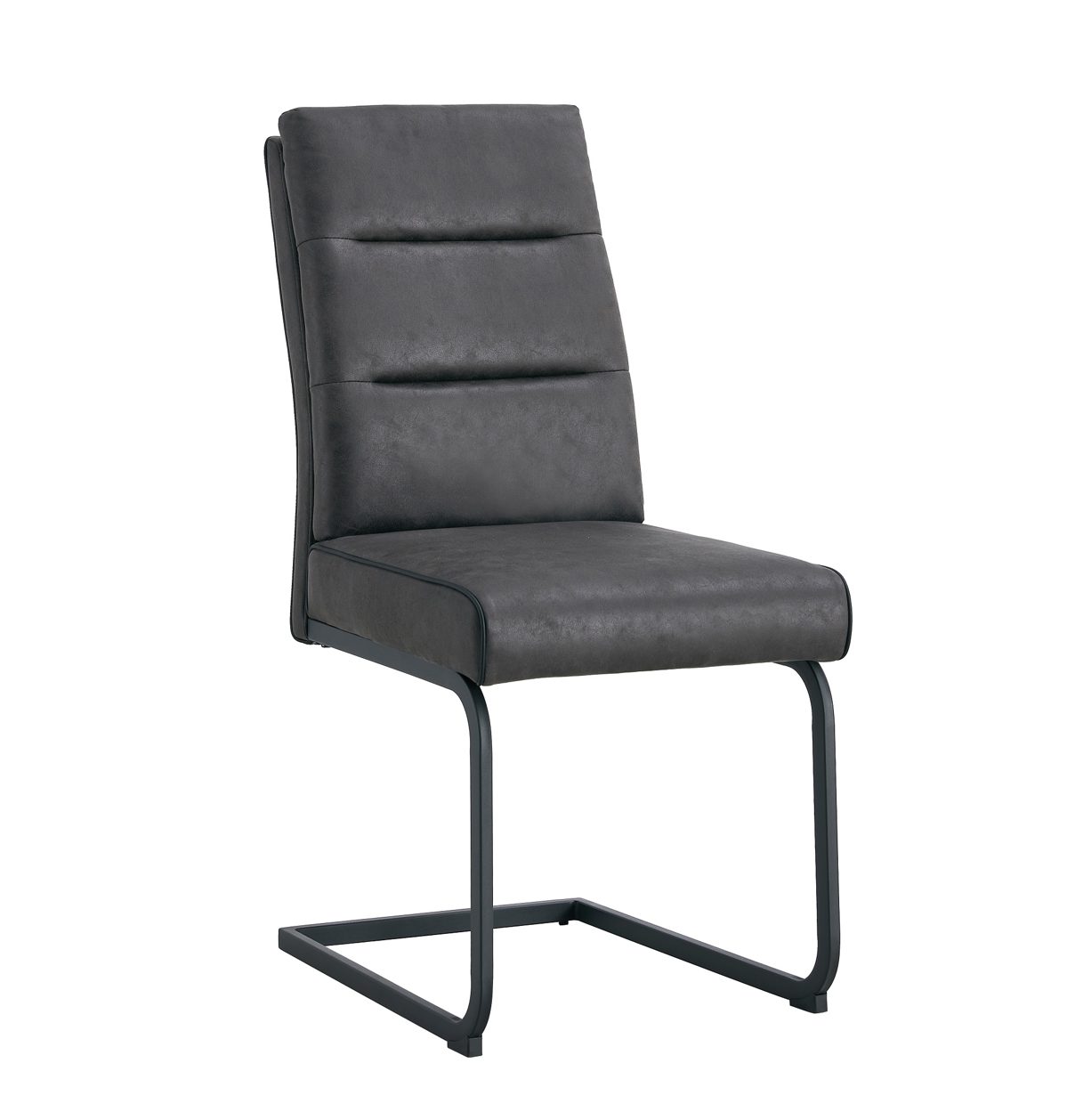 Der Freischwinger Marga der Firma Duo Collection ist in einem Mikrofaserstoff in anthrazit gehalten. Das Gestell ist ein Metallgestell in schwarz. Er besitzt einen Federkern im Sitz und ist bis 110kg belastbar.