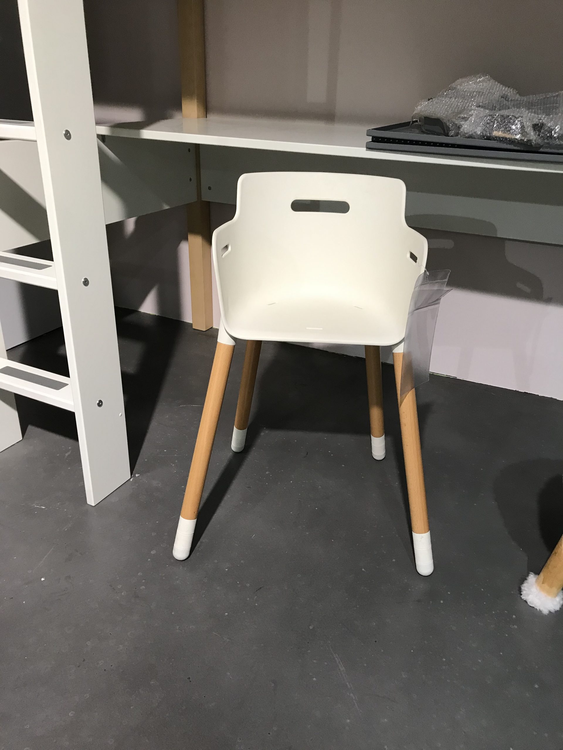 Der Juniorstuhl Study der Firma Flexa besitzt Beine die aus massiver Buche gefertigt sind und daher eine gute Stabilität bieten. Für die Pflegeleichtigkeit besteht der Sitz aus weißem Kunststoff um alles leicht entfernen zu können. Die Sitzhöhe lässt sich auf 41, 44 oder 47cm einstellen.