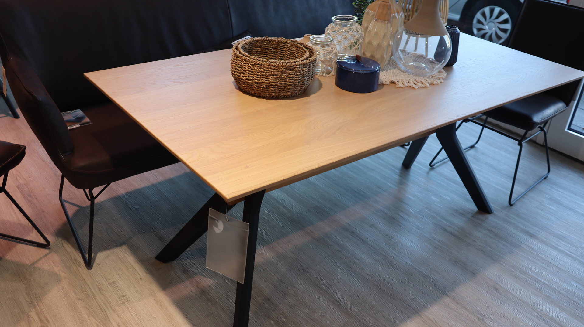 Der Esstisch Interliving 5502 der Firma K+W Interliving hat eine Tischplatte in Wildeiche bianco lackiert. Das schwarze Gestell rundet das Ganze ab. Ein Hingucker in Ihrem Esszimmer.