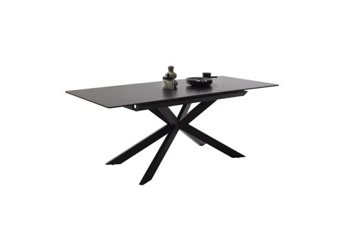 Der Ausziehtisch Bonanza der Firma MCA Funiture ist in einem Keramik in anthrazit mamoriert gehalten. Er hat einen Grundmaß von ca. 160x90cm und ist durch einen Synchronauszug mit Liftfunktion auf 200cm vergrößerbar. Dadurch hat man viel Platz für Familie und Freunde. Das Gestell ist ein Metallgestell in schwarz matt lackiert.