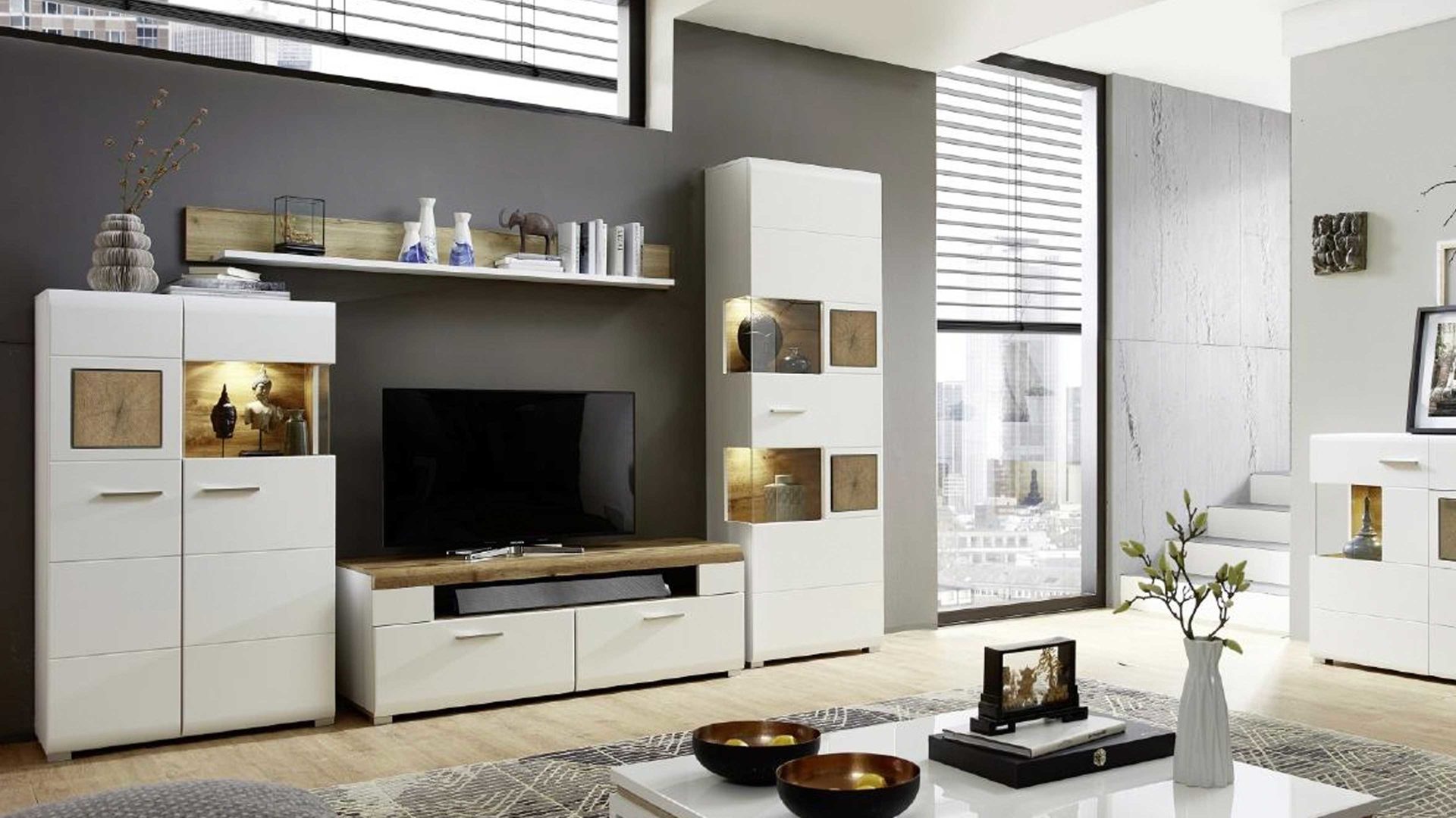 Sie suchen den perfekten Platz für Ihr TV-Gerät? Dann ist dieses Medien-Lowboard genau das Richtige für Sie. Die mattweißen Fronten des TV-Unterschranks haben Absetzungen in Hirnholz-Nachbildung und verleihen dem Lowboard eine gewisse Einzigartigkeit, die sich vielseitig kombinieren lässt. Dem mattweißen Korpus des Fernsehschranks gibt die Rückwand, der Oberboden und die Blende aus einer Eiche Altholz-Nachbildung eine edle und warme Optik.
