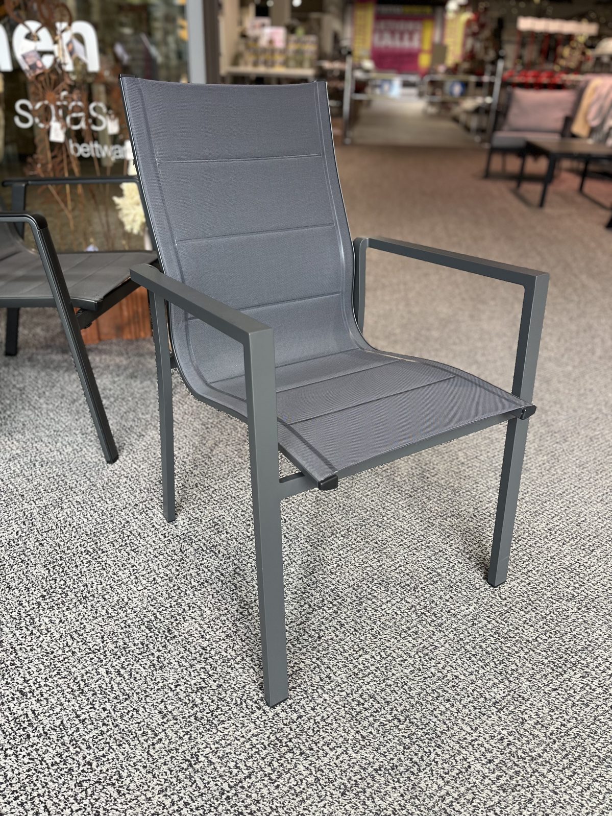 Der Stapelsessel Unicamo der Firma Wholesaler ist schön schlicht in anthrazitfarbenen Textil und einem Aluminiumgestell ebenfalls in anthrazit gehalten.