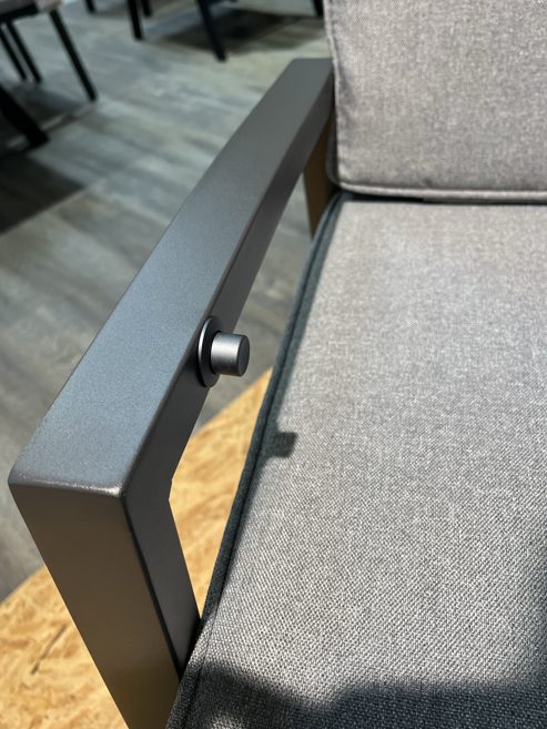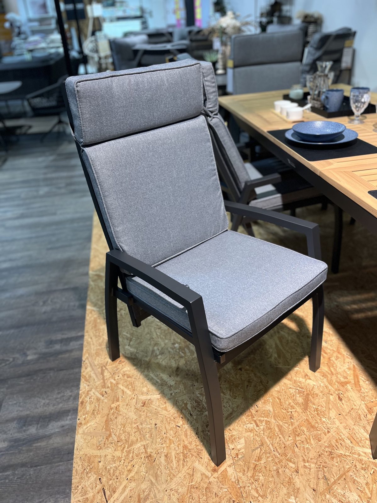 Der Positionsstuhl Sondrino der Firma Wholesaler ist schön schlicht in Aluminium anthrazit gehalten. Die Rückenlehne lässt sich ganz bequem auf Knopfdruck stufenlos verstellen.