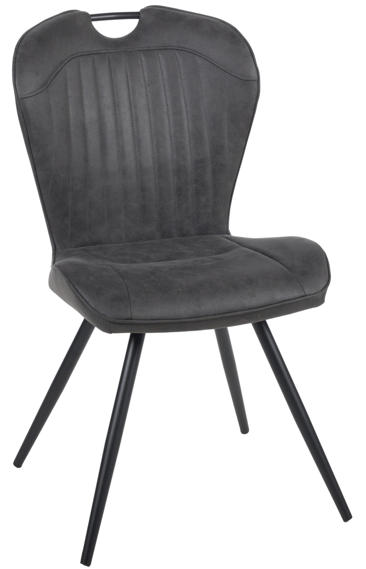 Der Stuhl Zoe der Firma Duo Collection ist in einem Mikrofaserstoff in anthrazit gehalten. Das Gestell ist ein Metallgestell in schwarz. Er besitzt einen praktischen Griff und ist bis 110kg belastbar.