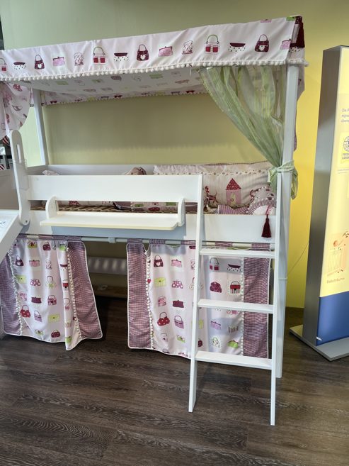 Das Spielbett Sophia der Firma Paidi ist ein Highlight in jedem Kinderzimmer. Die Rutsche lädt zum Spielen ein. Die tollen Themenvorhänge runden das Ganze ab.