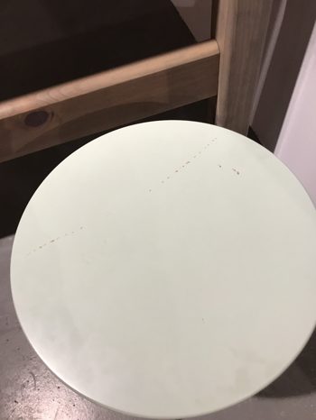 Bitte beachten Sie, dass es sich um ein Ausstellungsstück handelt, welches Gebrauchsspuren aufweisen kann. Kratzer im Lack auf der Sitzfläche (siehe Bild 3)
