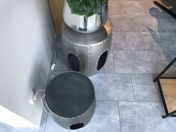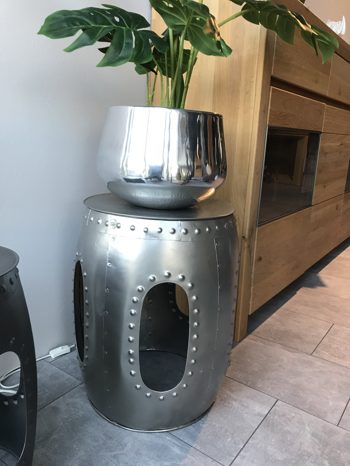 Der Beistelltisch Cheesy der Firma Ludwig Gutmann ist aus Metall, silber und anthrazit lackiert. Eine Besondere und schön dekorative Art eines Beistelltisches.