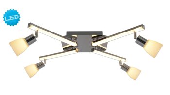 Praktischerweise sind die benötigten Leuchtmittel bereits verbaut. Die Lampe wird Ihnen mit acht LEDs geliefert, deren Leistung viermal 4,3 Watt und viermal 4 Watt beträgt. Es handelt sich um erstklassige Leuchtmittel mit einem Lichtstrom von 344 beziehungsweise 320 Lumen sowie einer Farbtemperatur von 3000 Kelvin. Demnach senden die Dioden allesamt helles, warmweißes Licht aus. Die nicht dimmbaren Leuchtmittel sind der hohen Energieeffizienzklasse A+ zugeordnet und beeindrucken mit einer Lebensdauer von bis zu 20.000 Stunden.