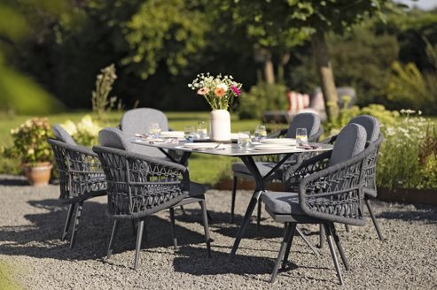Der Drehstuhl Interliving 7012 der Firma Wholesaler Interliving ist in tollen Rope Material gearbeitet in der Farbe dunkelgrau. Das Gestell ein Aluminiumgestell in der Farbe anthrazit. Die Auflage ist ein Olefin Teddy in hellgrau gehalten. Dieser Stuhl ist einfach ein echter Hingucker.