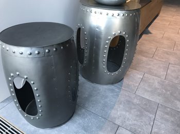 Der Beistelltisch Cheesy der Firma Ludwig Gutmann ist aus Metall, silber und anthrazit lackiert. Eine Besondere und schön dekorative Art eines Beistelltisches.