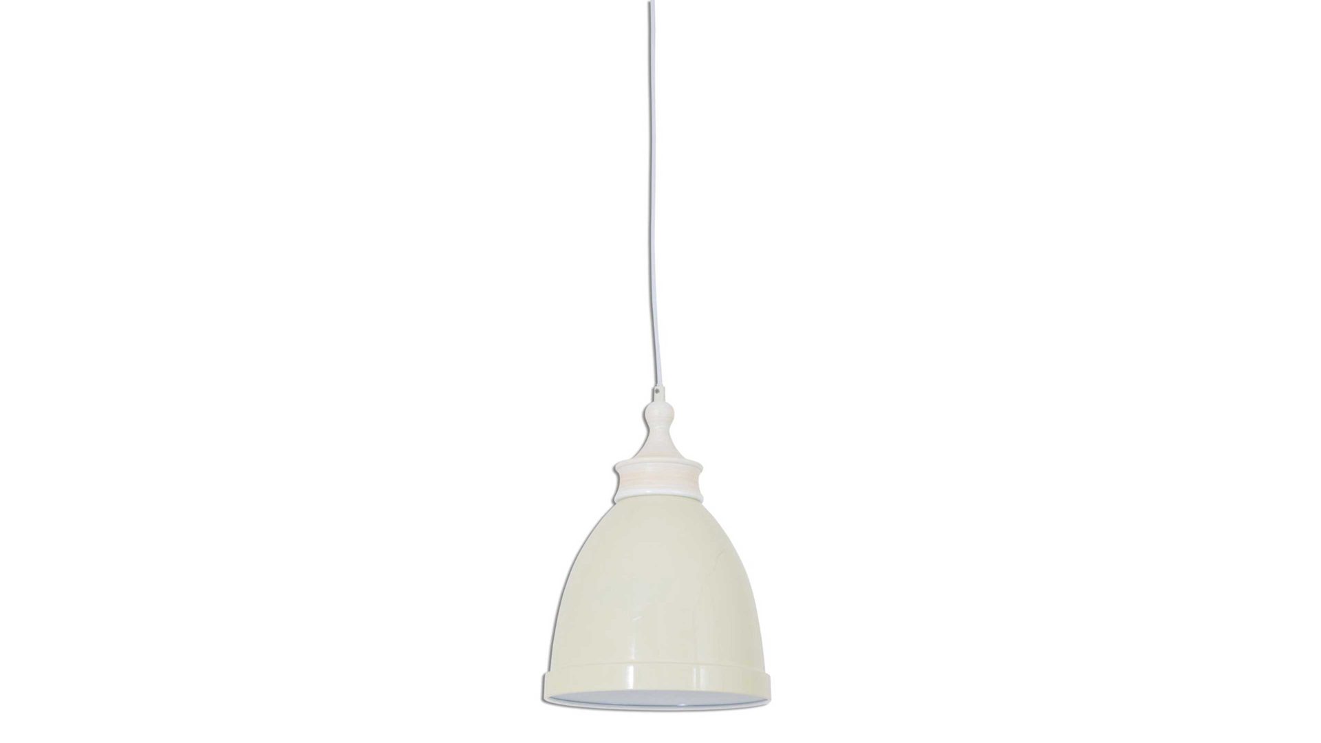 Die näve Metall-Pendelleuchte Pinhead ist hochwertig verarbeitet und modern-elegant designt. Sie offenbart einen beigefarben lackierten Metall-Lampenschirm mit einem holzfarbenen Aufsatz.