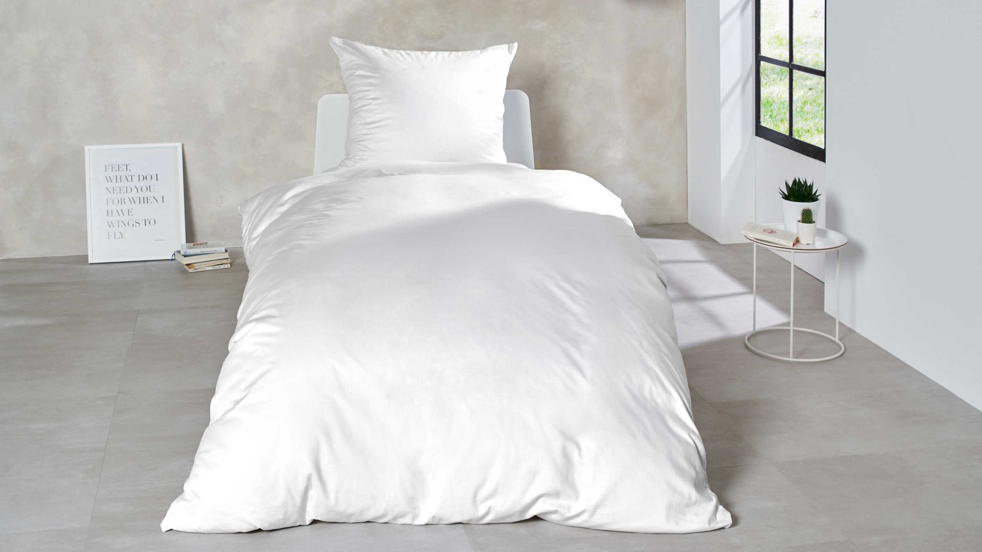 Der glänzende Satin-Look mit Wohlfühl-Charakter zeigt sich auf der Bettbezugbreite von ca. 155 cm und der Länge von ca. 220 cm und einer Kissenbezuggröße von ca. 80 x 80 cm (BxL) von seiner angenehmen Seite. Mit minimalistischer Eleganz bringt die Bettwäsche in Weiß besonderes Flair ins Schlafzimmer.