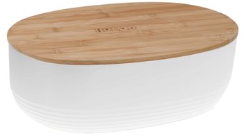 kela Brotkasten Namur | weißes Poysterol | Bambusdeckel, auch als Schneid- und Serviertablett verwendbar | Maße ca. 38 x 14 x 23 cm (LxHxT) | in verschiedenen Farben bestellbar