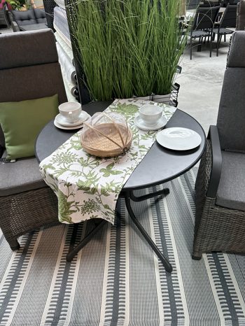 Der Klapptisch Vivodur der Sieger ist mit einer Tischplatte in Schiefer anthrazit und einem Gestell in Eisengrau ausgestattet. Der Durchmesser beträgt 85cm. Er lässt sich ganz einfach zusammenklappen und vereinfacht so das Verstauen.