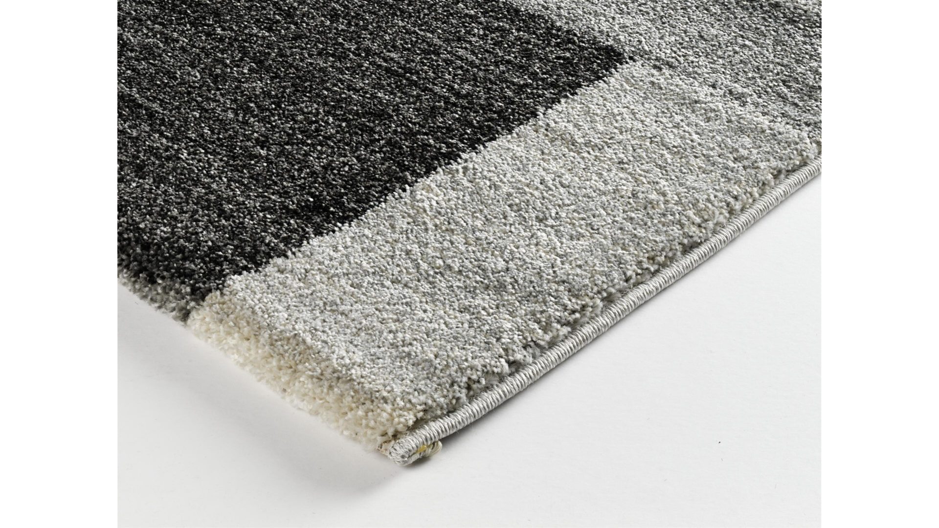 Moderne Mosaikstruktur in angenehm-dezenten Farbverläufen. Mit geometrisch angeordneten Vierecken verschiedener Größe und Kolorierung gehört der Designerteppich Castle Beppo zu den Wohnaccessoires, die für Form- und Farbenvielfalt sorgen und dabei eine gleichmäßige Struktur und ein harmonisches Karreefeld erzeugen. Der Webteppich ist seitlich gekettelt und vor Kopf umgeschlagen.