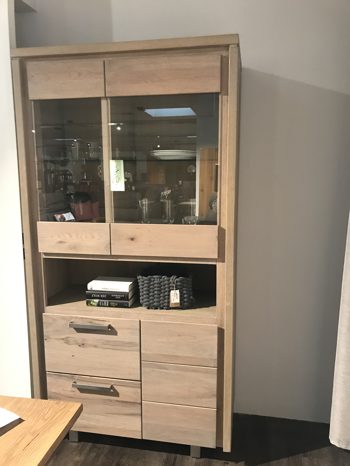 Vintage summer grey Eiche massiv, B-H-T: 100x200x45cm mit 1 Tür und 2 Glastüren